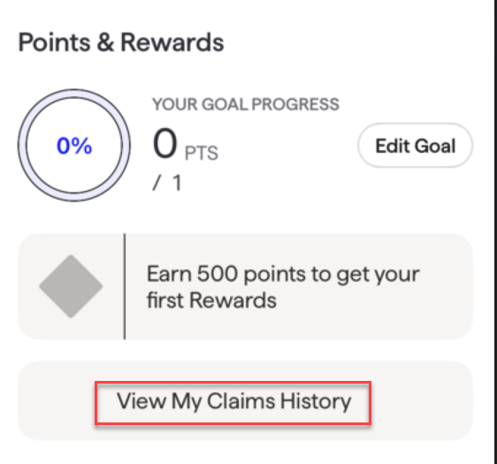 - OR if you have no rewards (Example: A new year started and you are trying to resend from a previous year), tap the message "View My Claims Hisotry" as shown below: