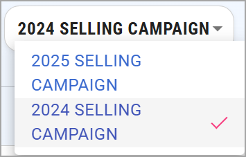 When our systems roll over to the new year, you will still have limited functionality for the previous year's sales, including viewing Scout sales. Pages with this functionality will have a drop-down menu in the upper right-hand corner to select the selling campaign you wish to view. You can select the previous year Selling Campaign to view the data.