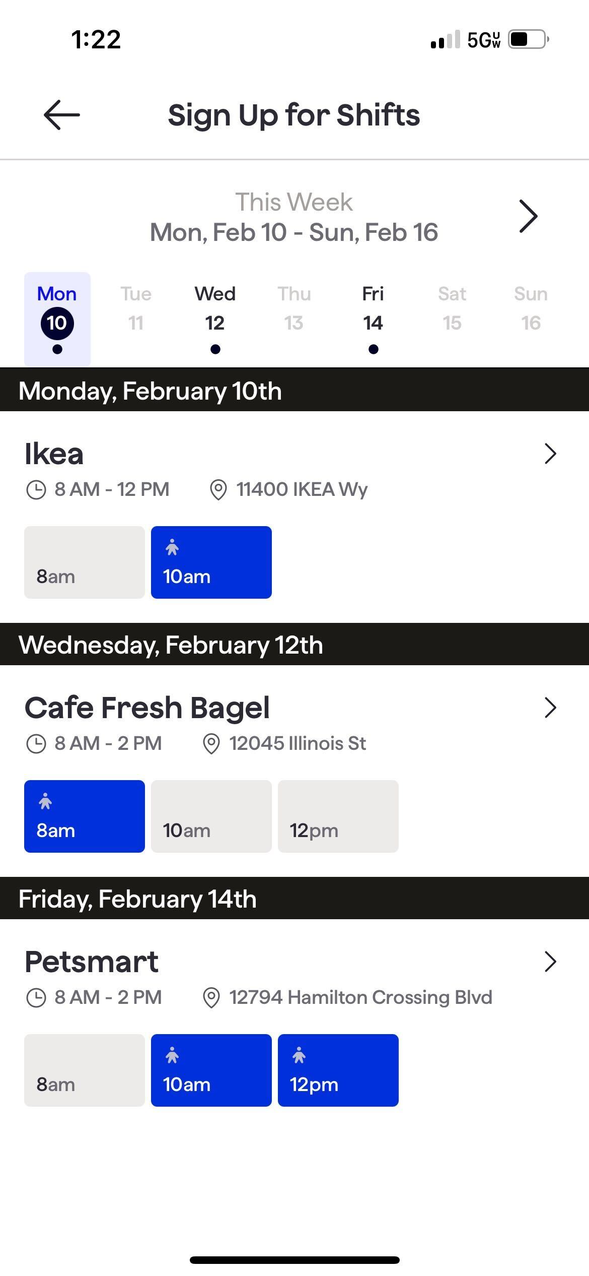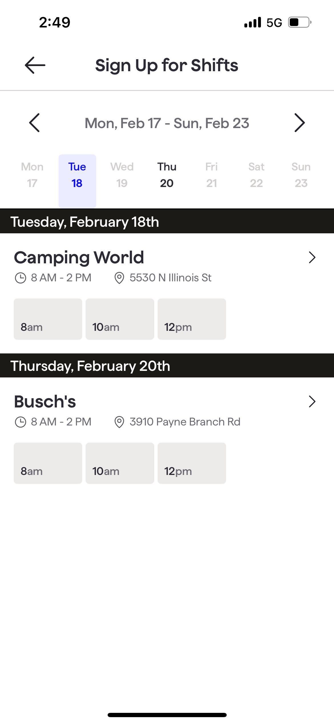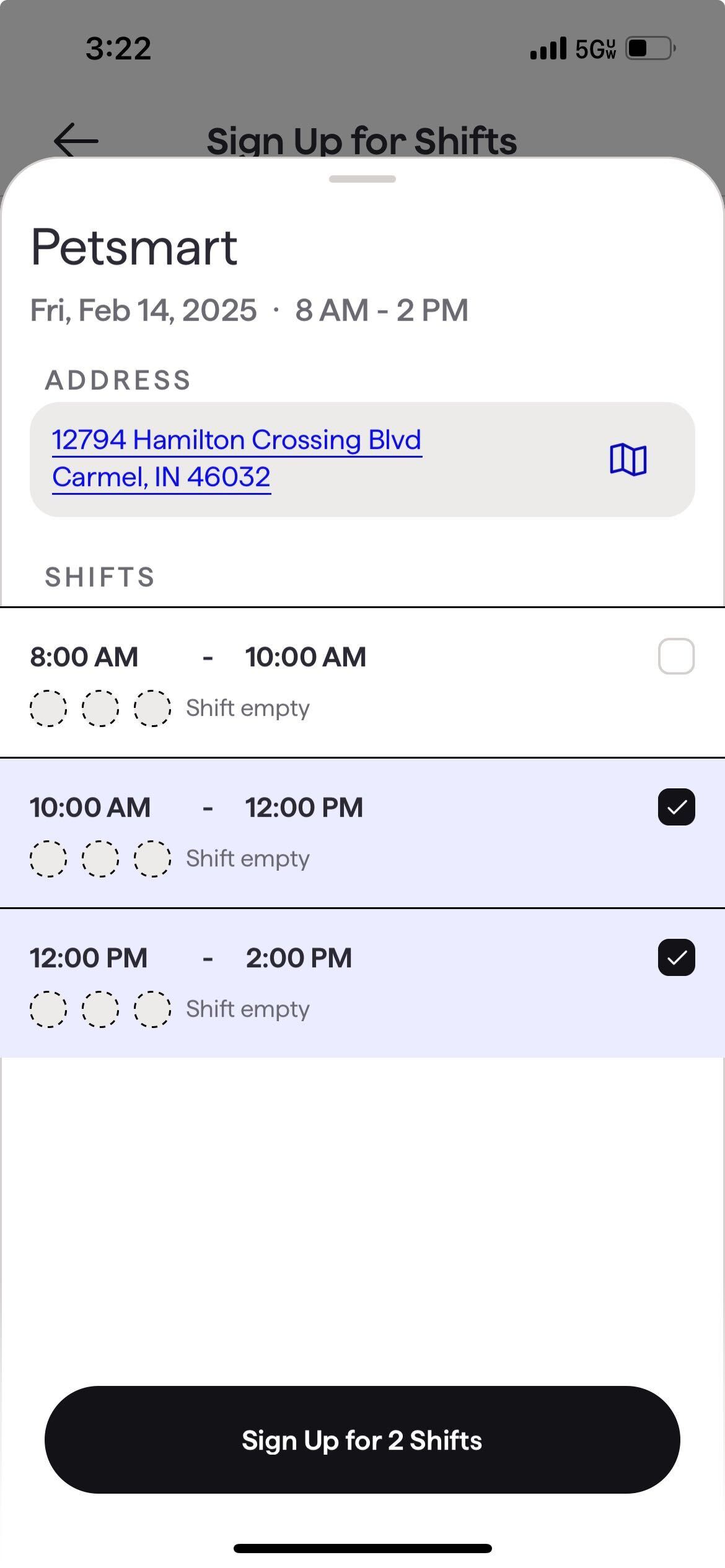 - Tap the storefront you want to sign up for. This will open the sign up screen. Select the shift(s) you want to sign up for and tap the ‘Sign up for Shift’ button.
