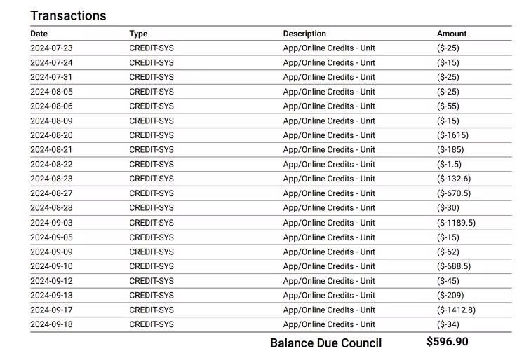 - Generate Invoice - This invoice will show all orders that have been placed by the unit and transactions that have applied to the amount due to council. It will not include specific details of adjustments that were made to the orders.