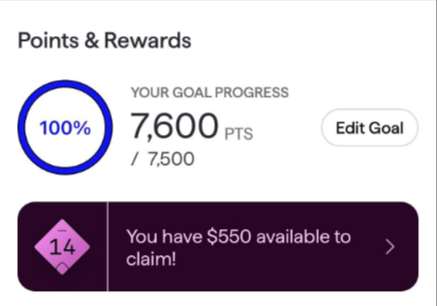 - Tap on the Rewards Level on the dashboard, i.e. "You have $XXX available to claim"